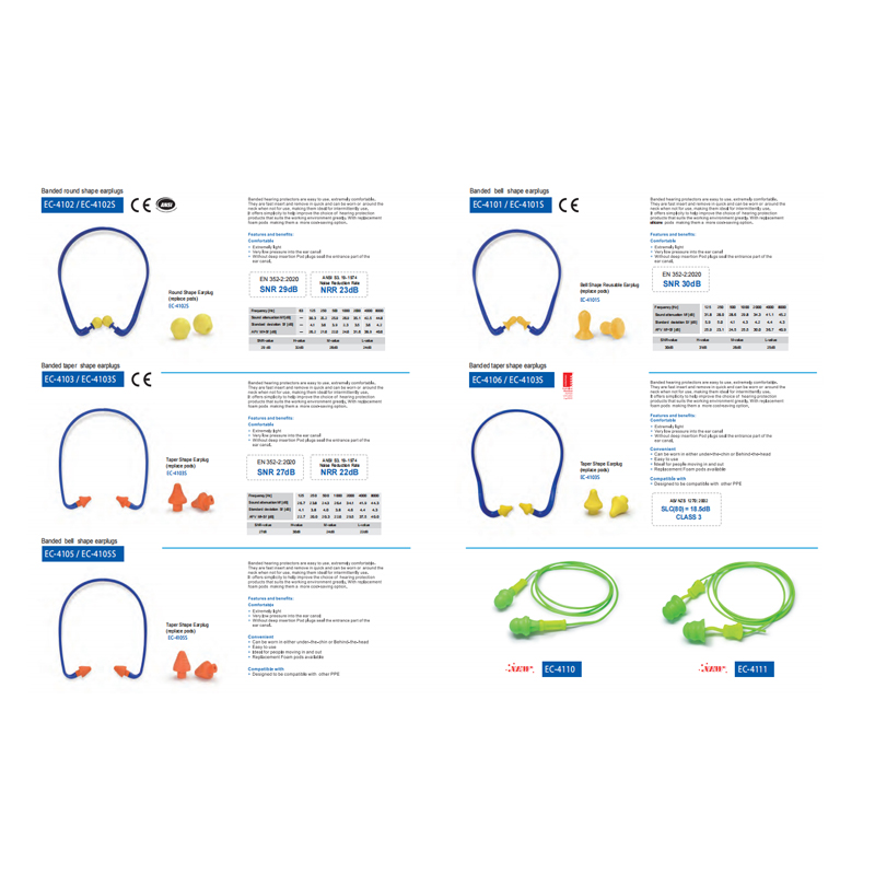 מגיני שמיעה עם פסים קלים לשימוש, נוחים במיוחד. הם ניתנים להחדרה ומהירה במהירות ויכולים להיות תולעים או סביב הצוואר כאשר לא לשימוש, מה שהופך אותם לאידיאליים לשימוש לסירוגין. הם מציעים פשטות כדי לעזור לשפר את הבחירה של מוצרי הגנה לשמיעה המתאימים מאוד לסביבת העבודה. עם תרמילי קצף חלופיים מה שהופך אותם לאפשרות חסכונית יותר בעלויות.