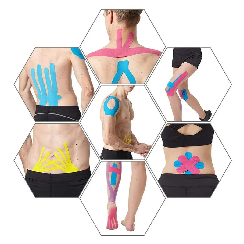 קלטת קינסיולוגיה עשויה מבד אלסטי כותנה באיכות גבוהה ודבק רגיש ללחץ רפואי איכותי. זהו תחום ספורט