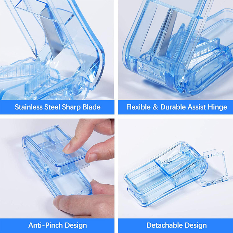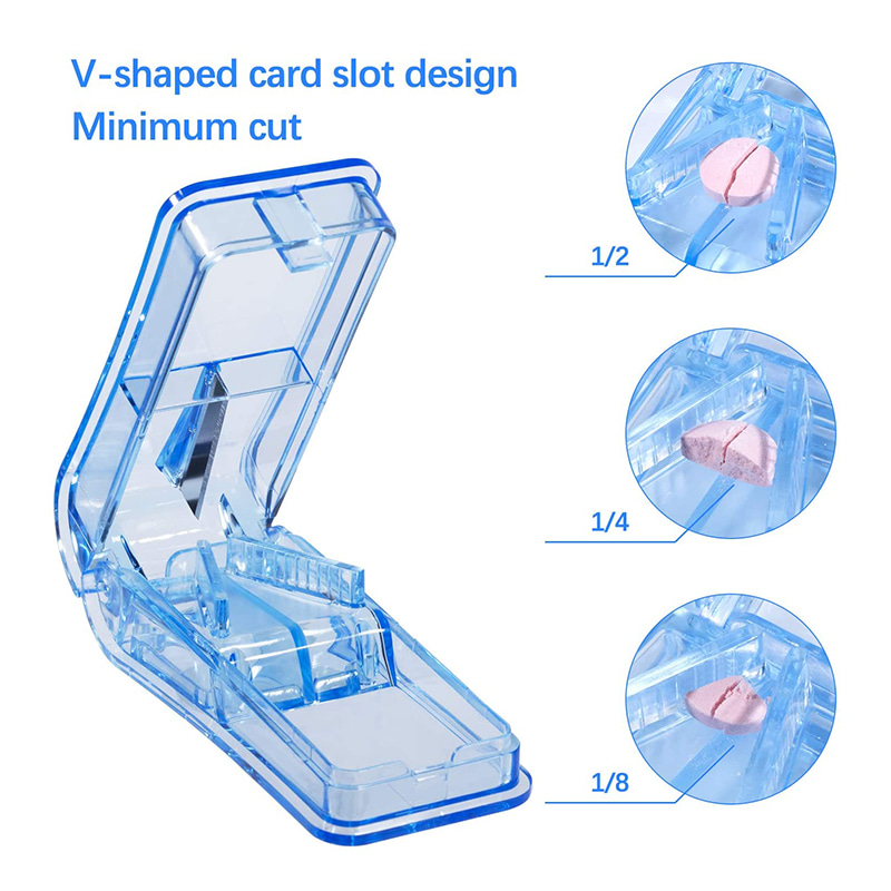 מפצל הגלולה עם עיצוב בצורת V יכול להכיל תרופות בגדלים שונים וצורות מרובות, אוחז בחוזקה בכדורים לחיתוך קל ומדויק.
