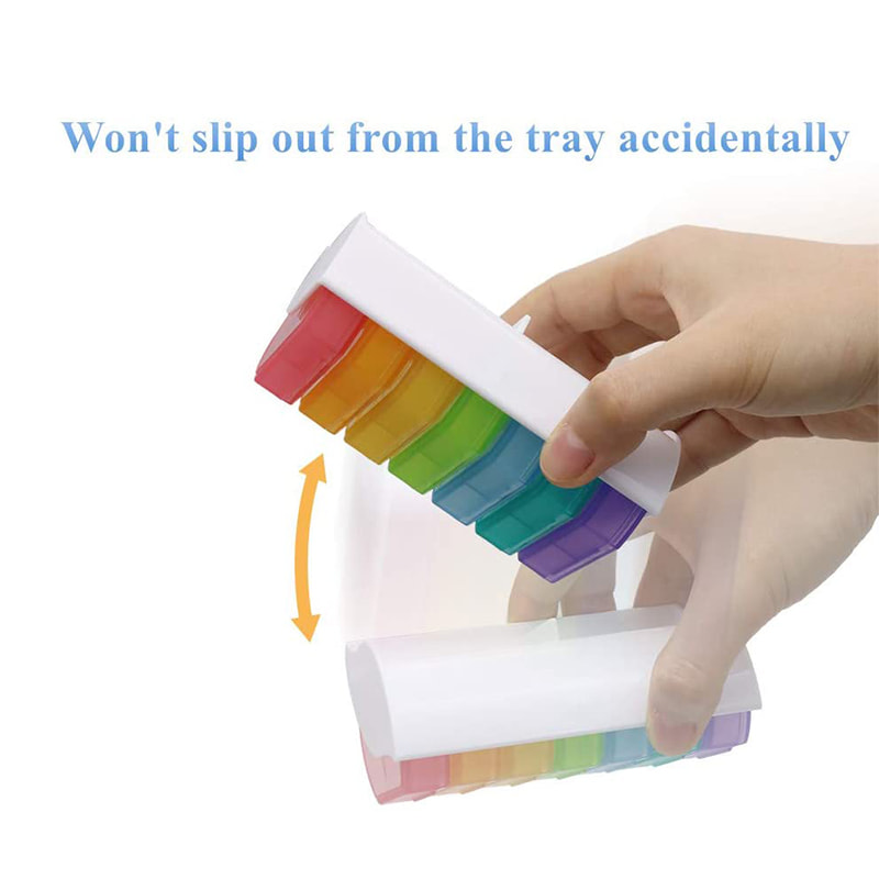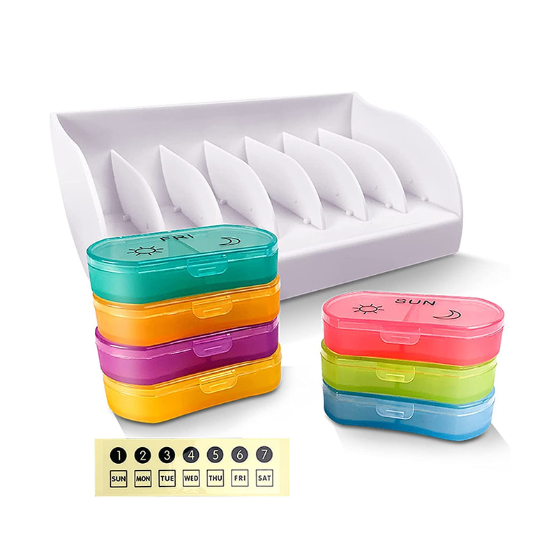 למיכל הגלולות היומי הזה יש תוויות גדולות וקלות לקריאה בכל תא, כך שתמיד תוכל למצוא את התרופה שלך ללא מאמץ.
