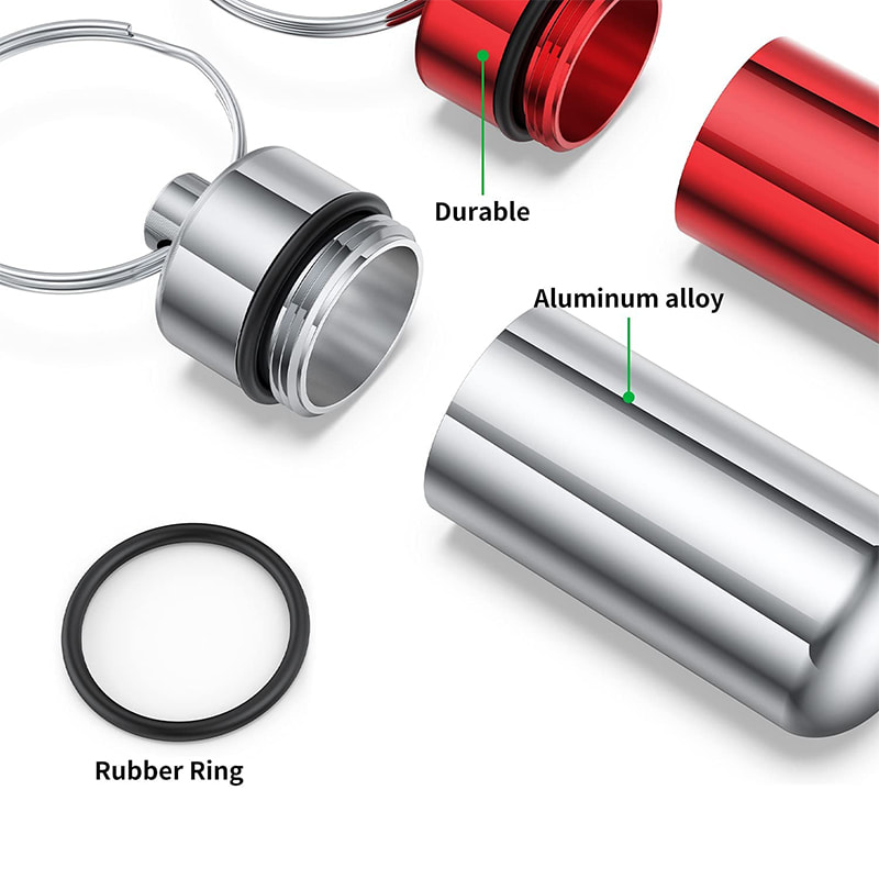 למחזיק הכדורים יש אטם O-ring מגומי על מכסה ההברגה שהפך אותו לאטום ואטום מספיק כדי לשמור על הכדורים שלך בפנים בטוחים ויבשים כשאתה בחופשה, טיול, קמפינג או כל פעילות חיצונית.