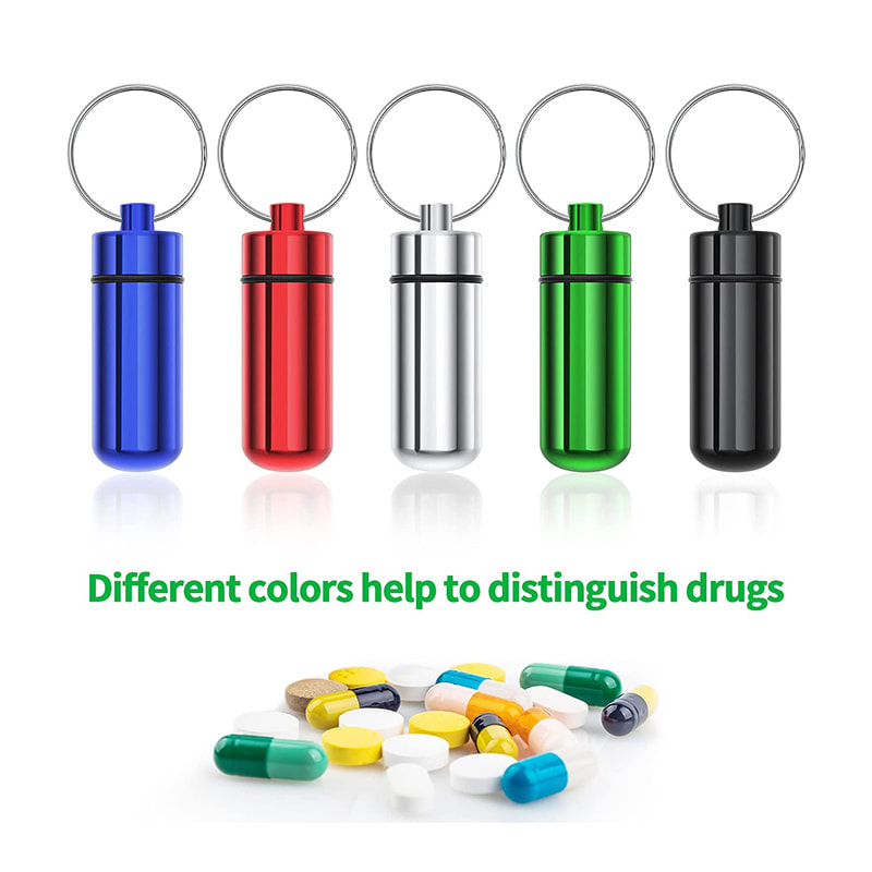 הסט מכיל 5 מיכלי תרופות, שחור, כסף, אדום, ירוק וכחול. אנחנו יכולים לשים כדורים מעורבים בקופסה אחת.