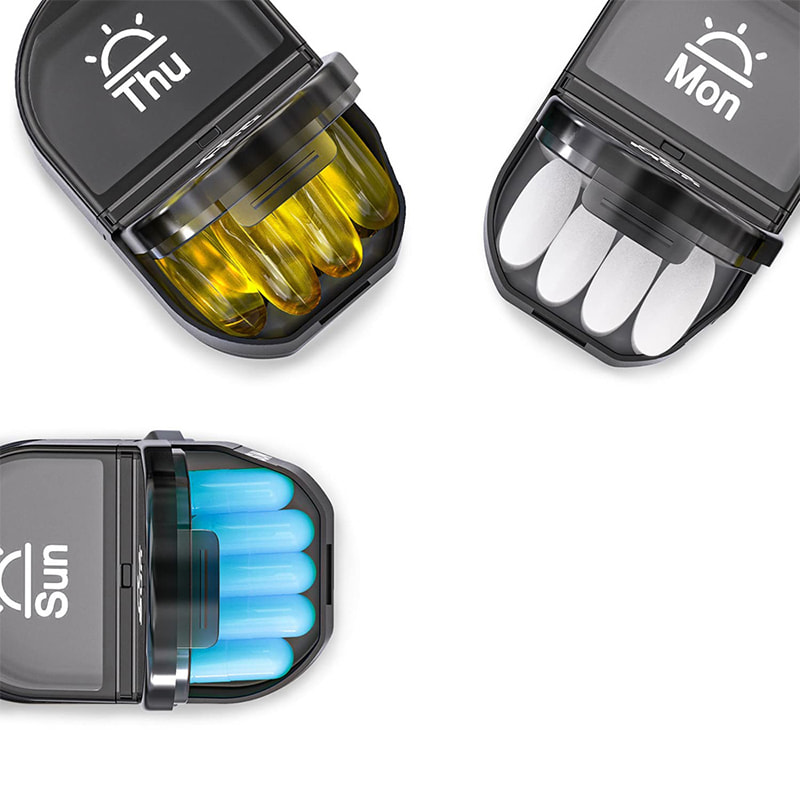 מארגן גלולות אישי זה עשוי מפלסטיק ללא BPA בדרגת מזון.