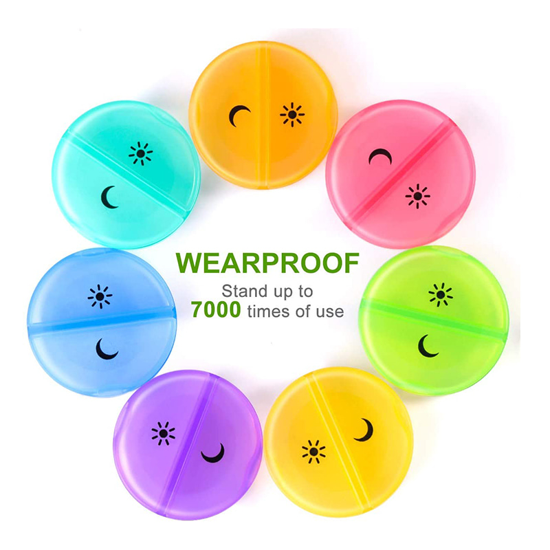 קופסאות ארגוניות לגלולות בעלות 7 צבעים עוקבות טוב יותר אחר התרופה שלך פעמיים ביום עד בבוקר ובצהריים.