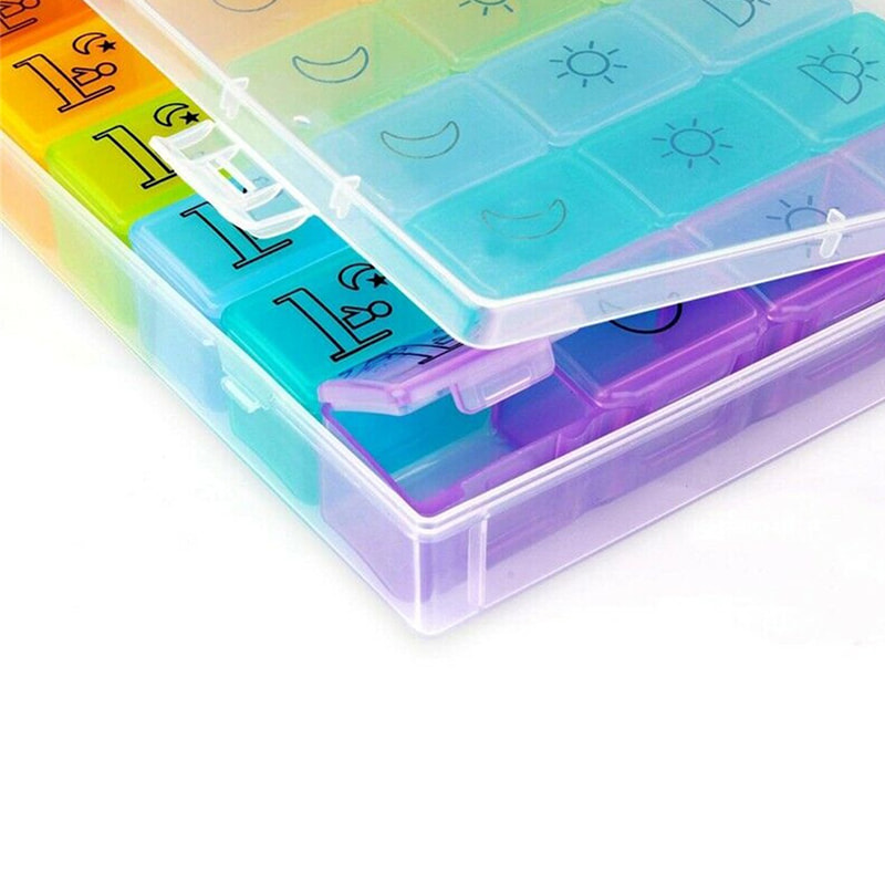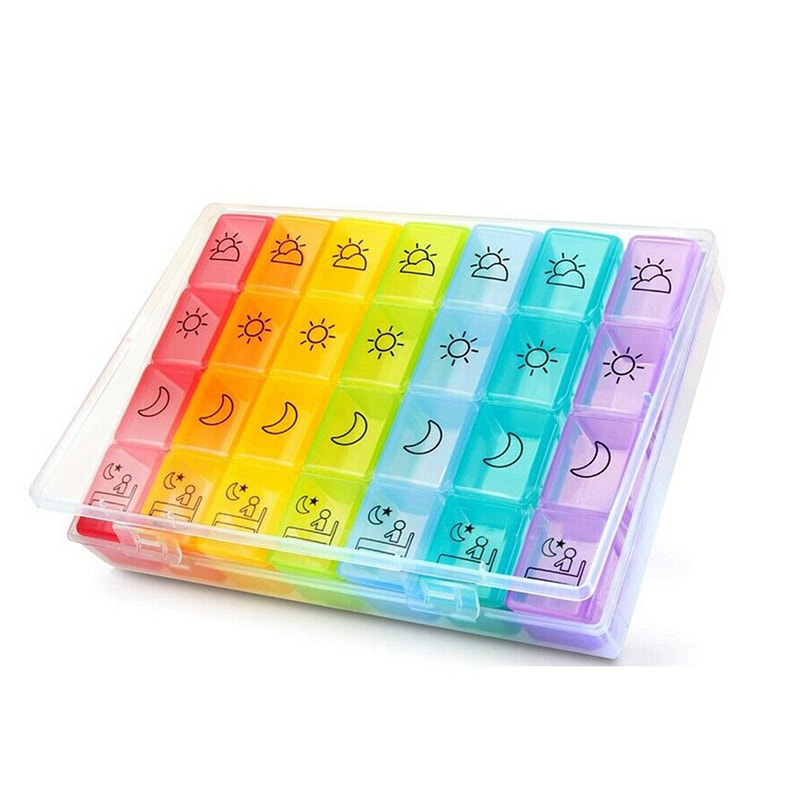 מנהל הגלולה של 7 ימים יעקוב אחר התרופות שלך 4 פעמים ביום (מיטת ערב צהריים). סמני תאריך כדי להזכיר לך מה אתה צריך לקחת באותו היום.