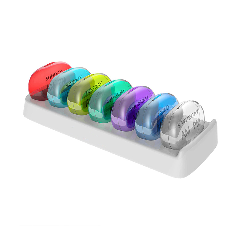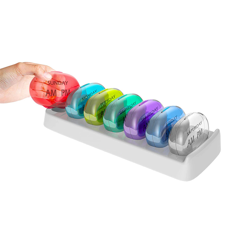 כל תא הוא בצבע שקוף אחר שניתן להשתמש בו כדי להבדיל בכל יום בשבוע.
