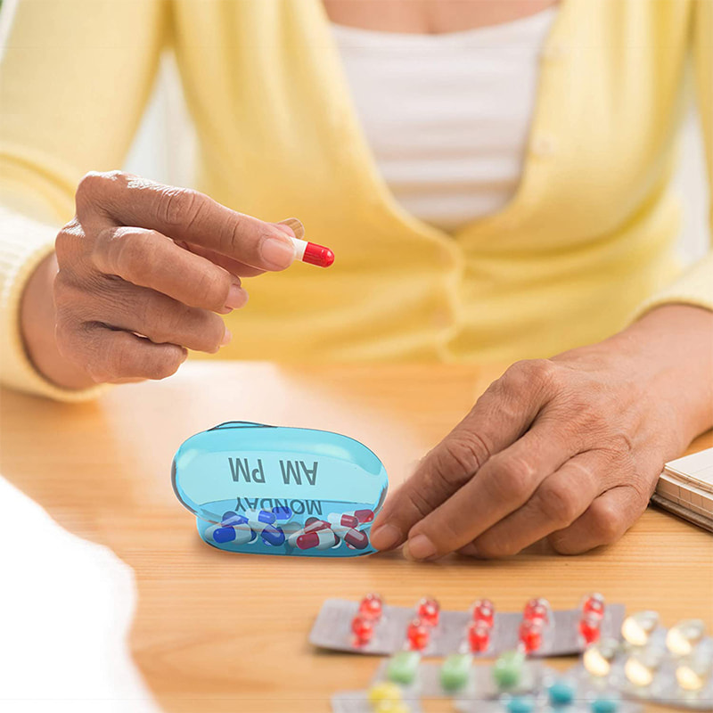 תזכורת לגלולות זו קטנה מספיק כדי להיות ניידת אבל גדולה מספיק כדי למלא את כל המרשמים שלך למשטר חד פעמי ביום.