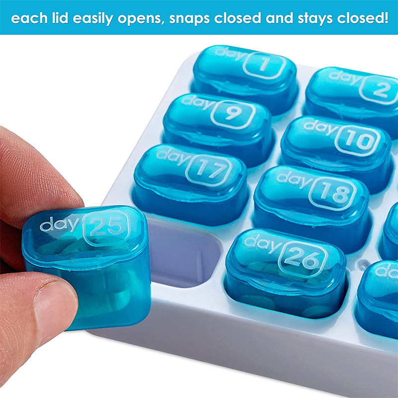 התרמילים ממוספרים כך שיתאימו ליום בחודש לשימוש קל, מה שמקל לזכור באיזה יום ומינון אתה נמצא.