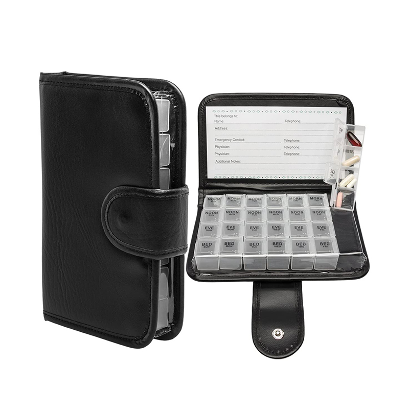 מארגן גלולות לנסיעות נהדר, מתקן ויטמינים. תזכורת לתרופות לנסיעות במכונית או במטוס, חופשות.