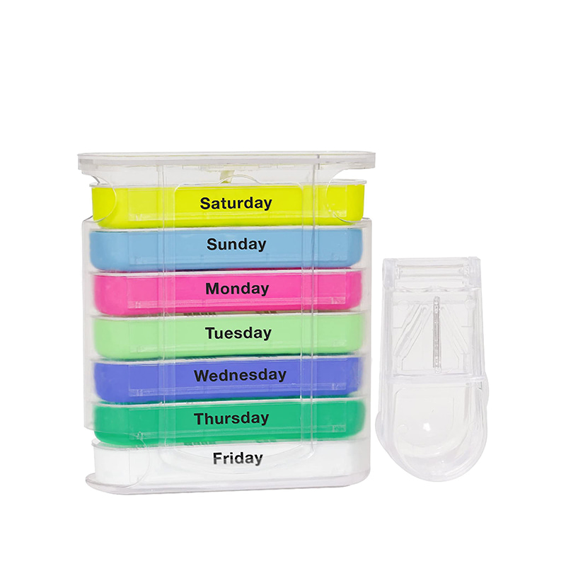 המארז החיצוני מעוצב שקוף ולכל מגש צבע בהיר ייחודי למשתמש להבחין בקלות בימי השבוע.
