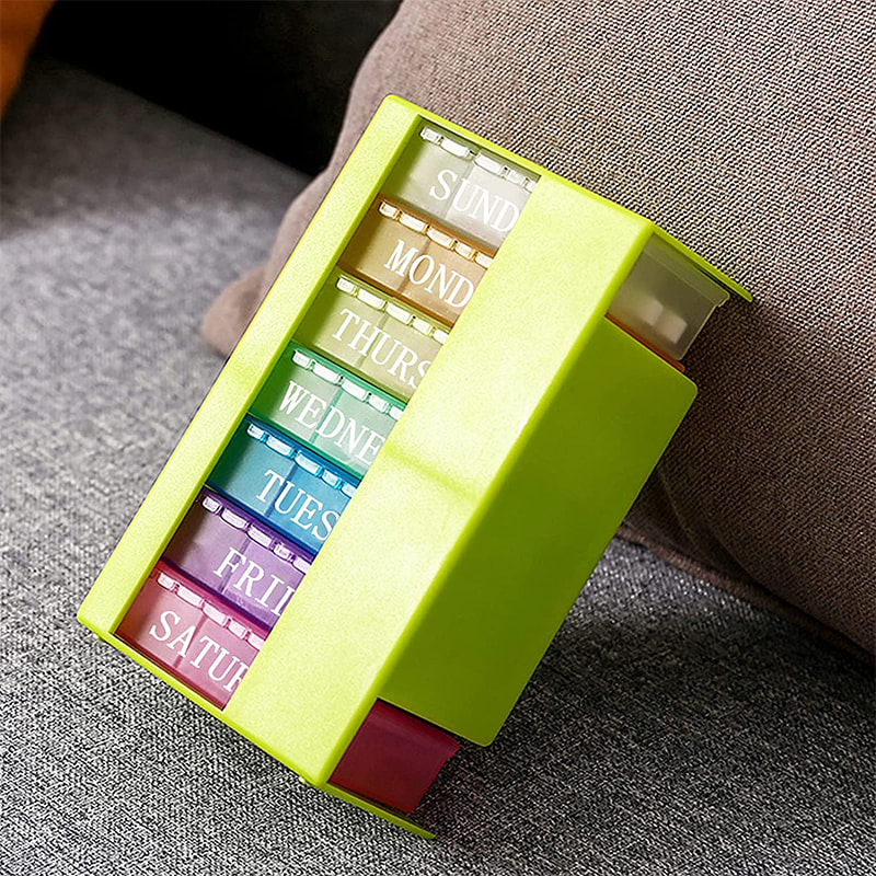 מארז הגלולה השבועי קל לטעינה ומתאים לכל גדלי התרופות, כך שתוכל לתכנן בקלות את תרופות הבוקר/צהריים/ערב שבוע מראש.