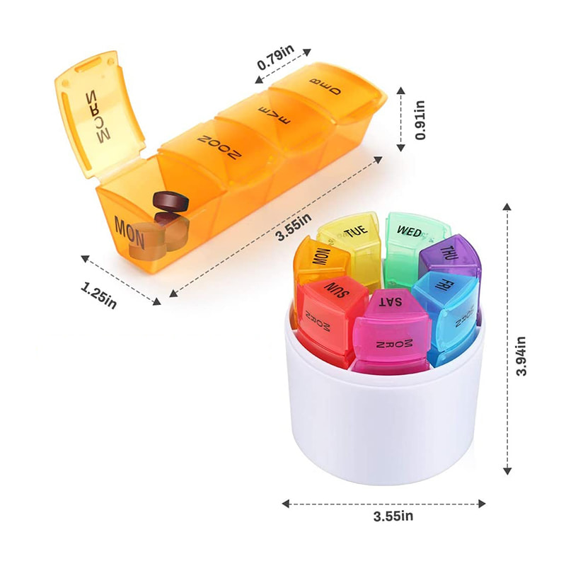 קופסת גלולות יומית עשויה מחומר פלסטי שקוף PP מחוספס ועמיד, חסר טעם וללא BPA.