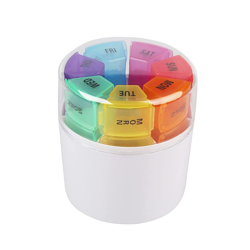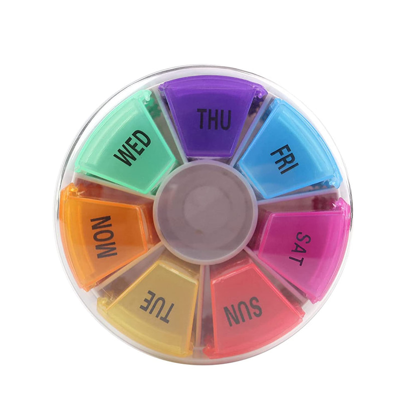 הכניסו את התרופות שתאכלו תוך שבוע לקופסאות קטנות עם צבעים שונים המסומנים שני, שלישי, רביעי, חמישי, שישי, שבת וראשון.