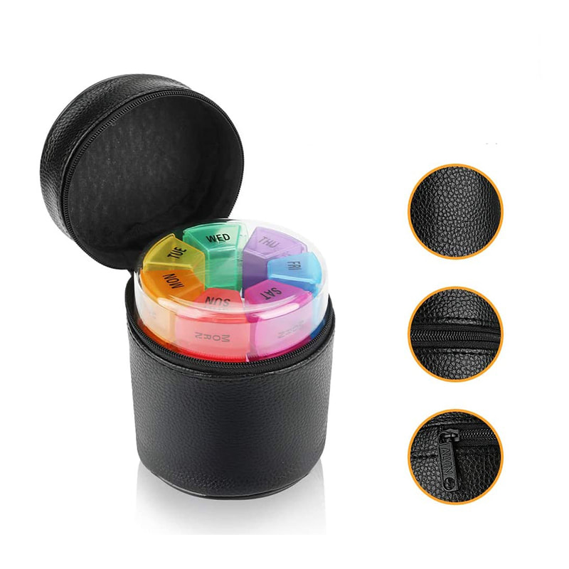 כשאתה בנסיעת עסקים, מטייל, מטייל או בבית, אתה יכול לתכנן את התרופות היומיות שלך בקופסה קטנה ולשים אותן בקופסת העור לנשיאה קלה.