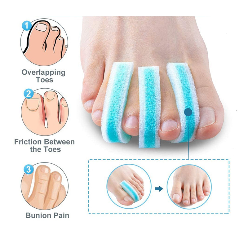 רפידות האצבעות שלנו מקצף יכולות לספוג לחץ וחיכוך בין אצבעות הרגליים כדי לסייע בהפחתת כאבי כף הרגל מתירס, שלפוחיות ועוד.