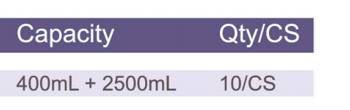 הקיבולת נעה בין 200 מ"ל ל-500 מ"ל.